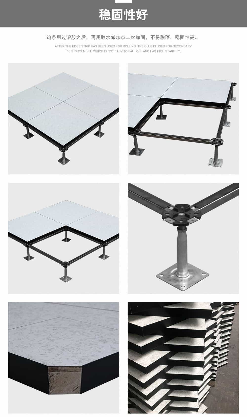 “遠川”牌硫酸鈣防靜電地板采用硫酸鈣為基材,地板上面用防火板HPL/PVC/陶瓷地板等裝飾面層,下面用鍍鋅板或壓花鋁合金粘合,四周用PVC導靜電封邊,地板不易受潮,不易變形,耐燃燒時間更長,使用壽命長,安裝好的地板下面形成通路,方便下面地板走線,線路檢修。地板無需除油磷化噴塑,平整度好、邊不反翹,環保、強度大,密封性及穩定性好。